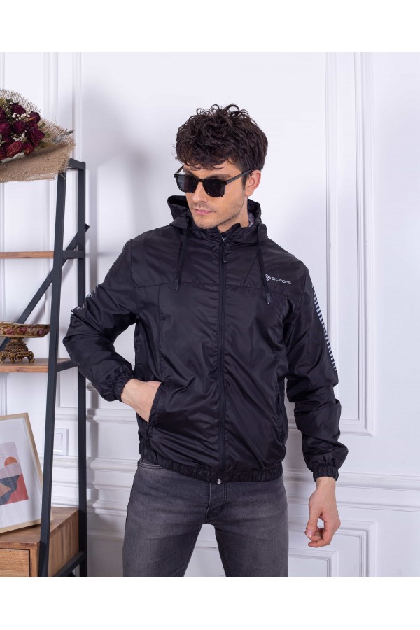 KAPÜŞONLU İÇİ ASTARLI YAĞMURLUK SİY...
