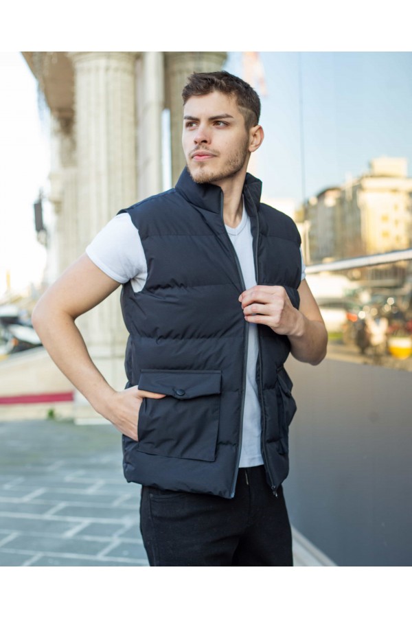 SU GEÇİRMEZ ŞİŞME YELEK 4 CEP SİYAH...